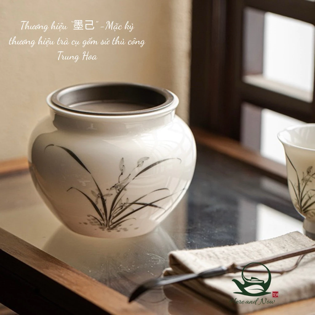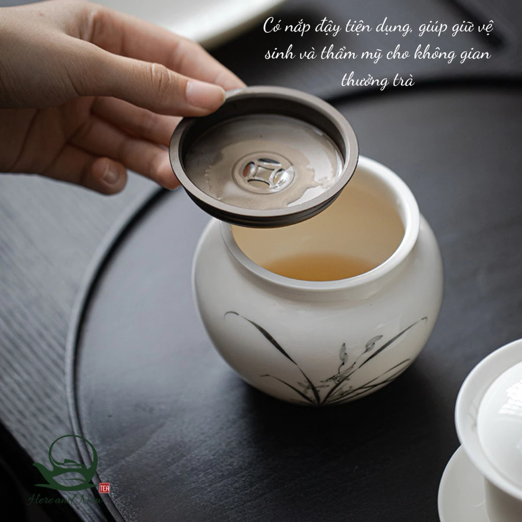 Chậu Đựng Bã Trà – Rửa Tay Họa Lan Thủ Công | Gốm Sứ Cao Cấp Kèm Nắp – Phụ Kiện Trà Đạo Sang Trọng