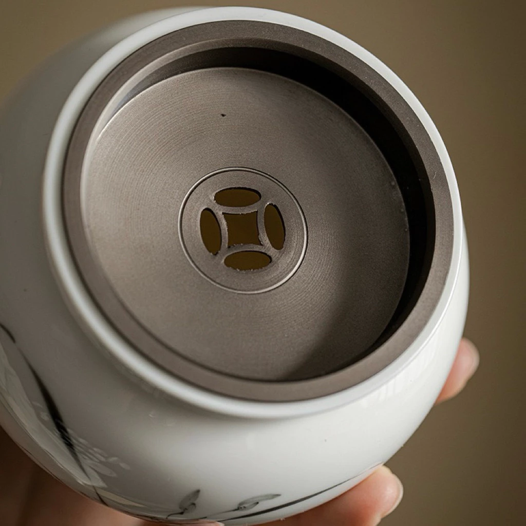 ✦ Thiết kế thủ công tỉ mỉ: Hình dáng tròn cân đối, men sứ sáng, có nắp đậy tiện lợi, phù hợp sử dụng trong không gian trà thất hoặc phòng khách.